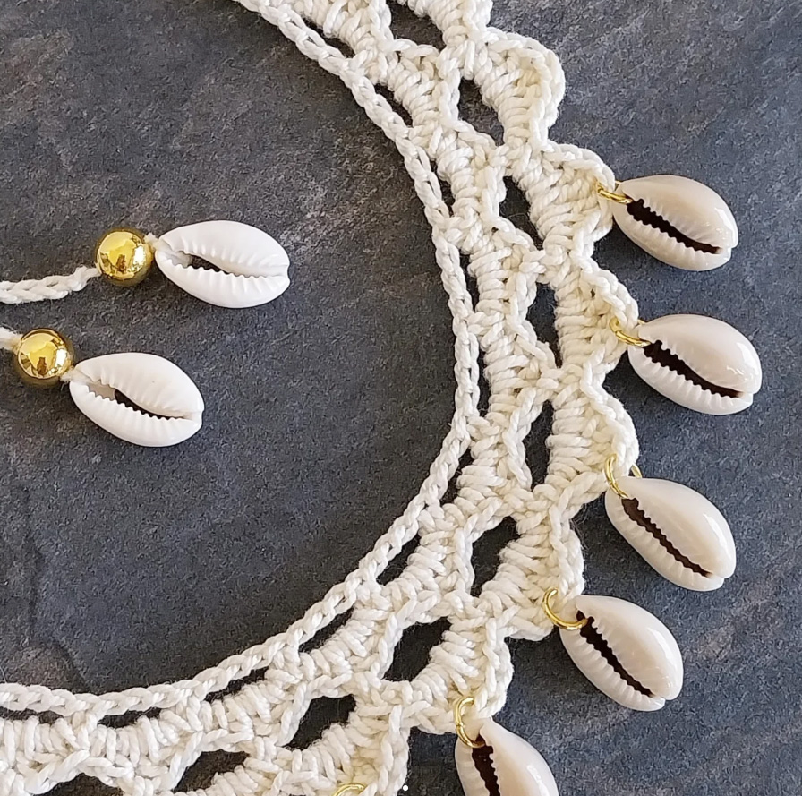 Colar em crochet de algodão e conchas naturais.