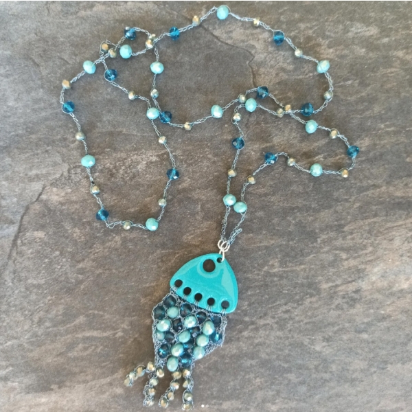 Colar em crochet de algodão e conchas naturais.